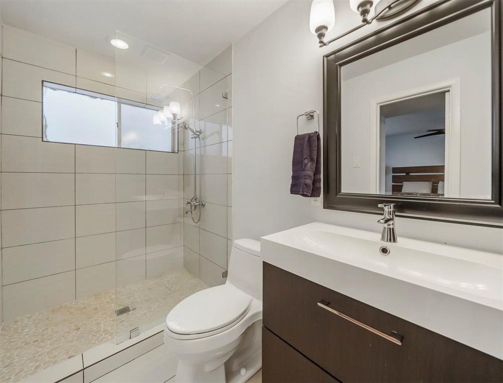 The bathroom has been tastefully remodeled, boasting a sleek frameless shower that adds a touch of luxury and sophistication to your daily routine.