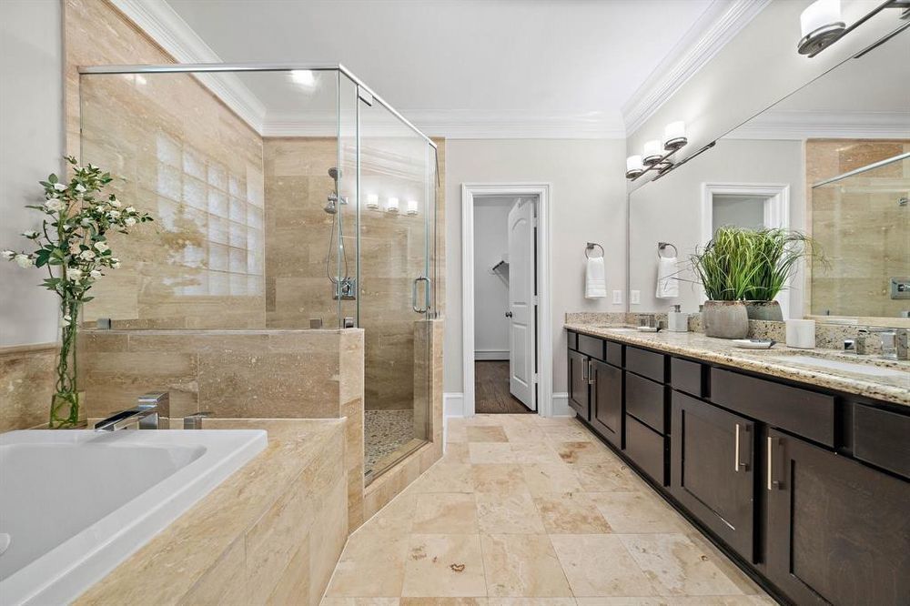 On the third floor, you'll find the primary bedroom with another en-suite bathroom, a walk-in closet, and a large soaking tub and shower. This floor also features a guest bedroom, ensuring privacy and comfort for all.