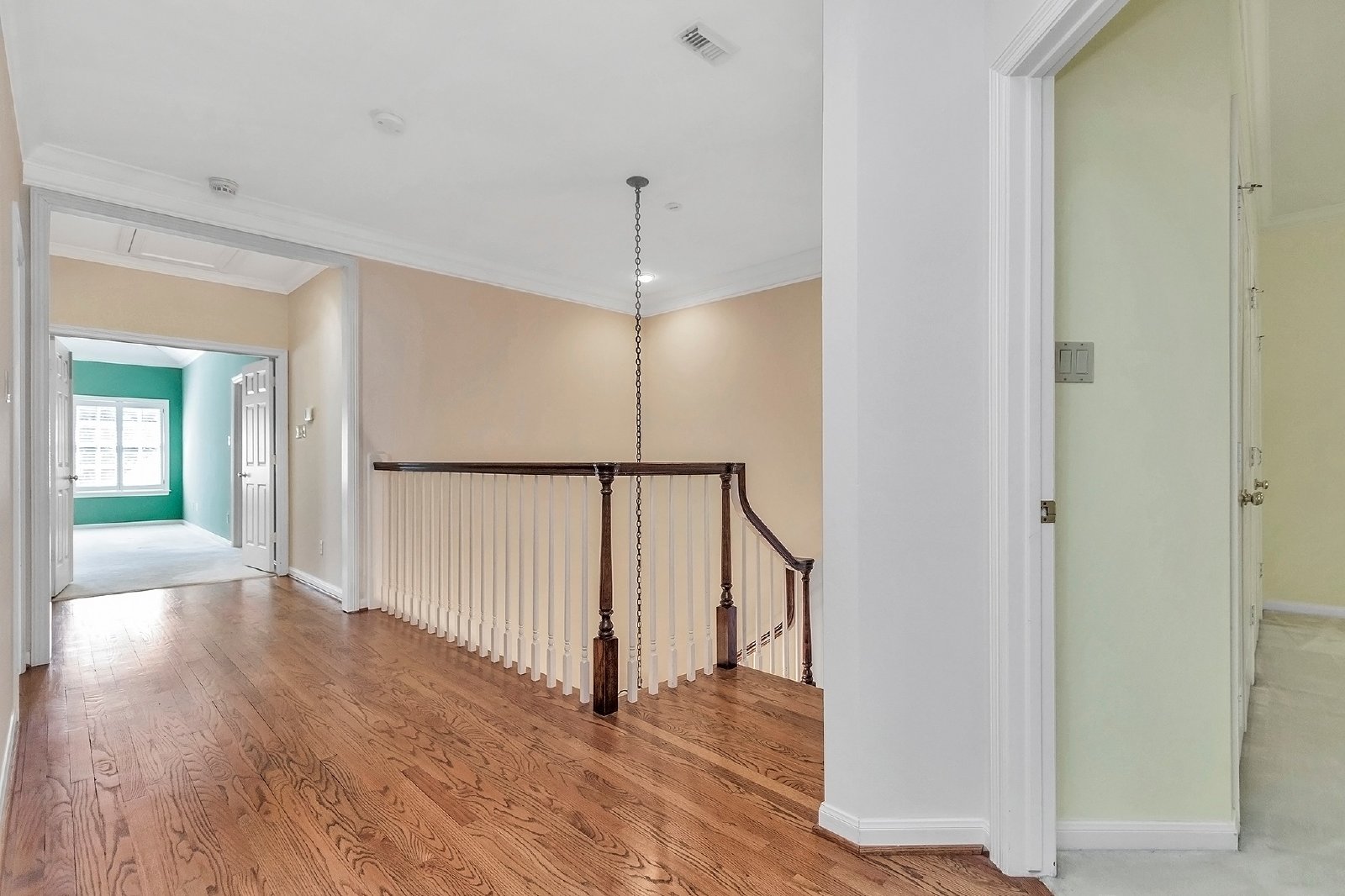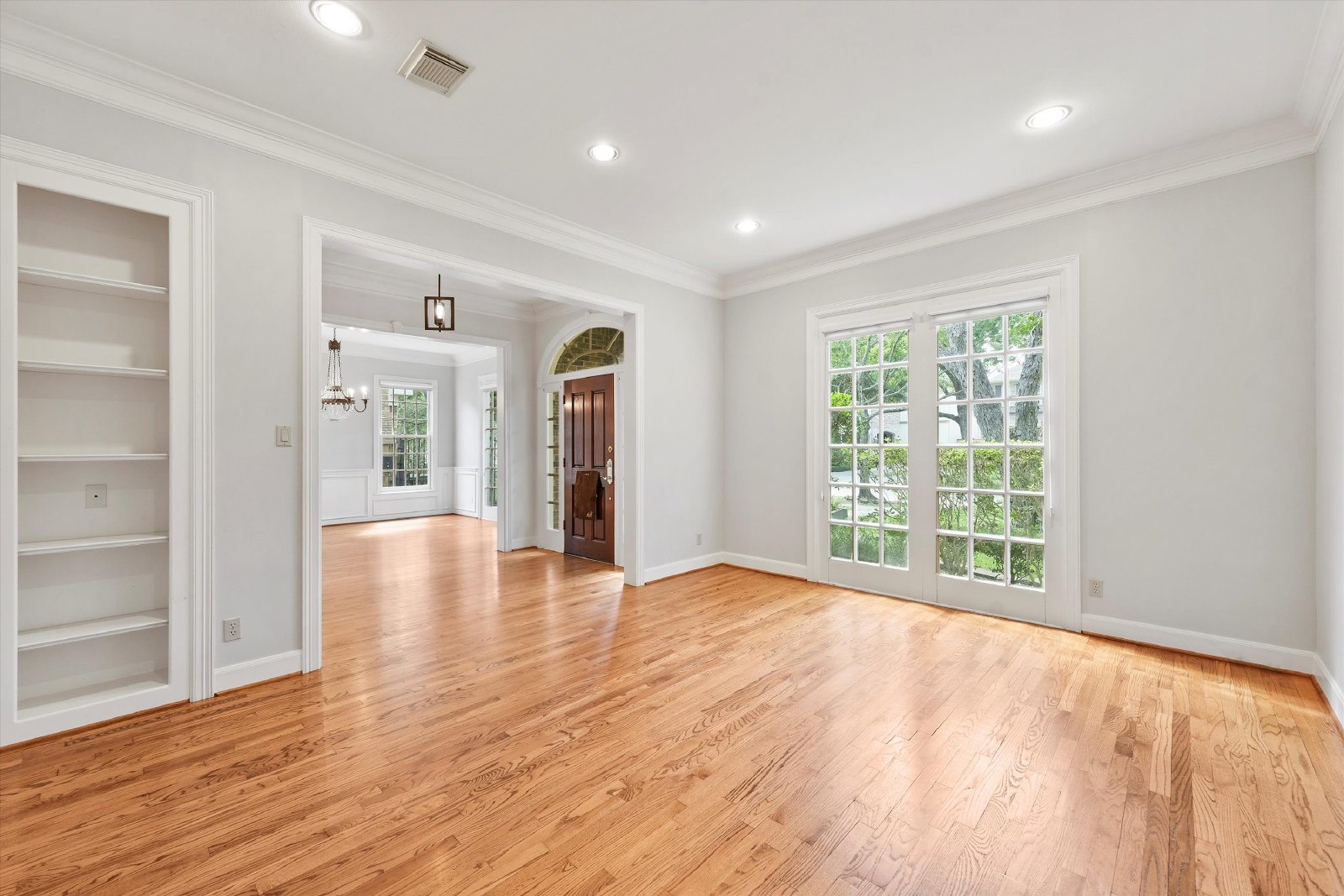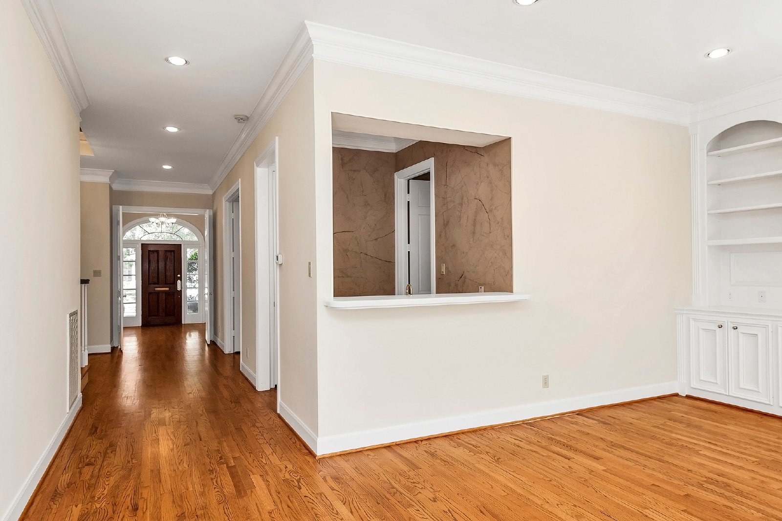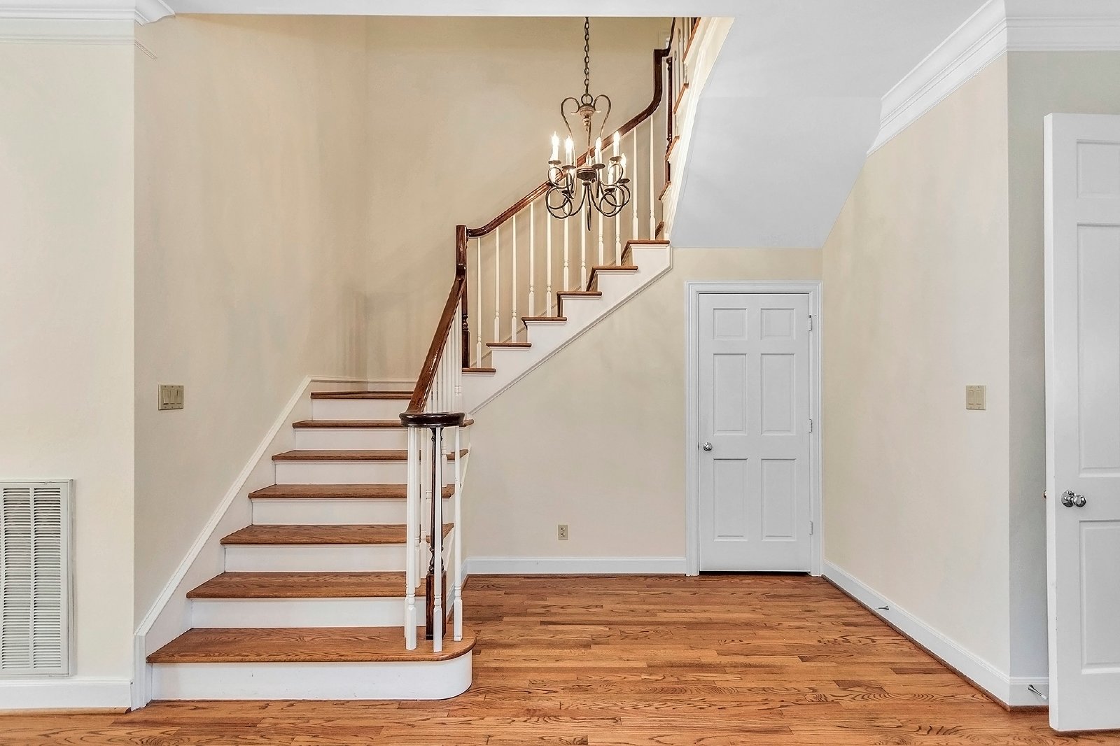 This elegant residence features both formal living and dining rooms, showcasing beautiful hardwood floors that add timeless charm.