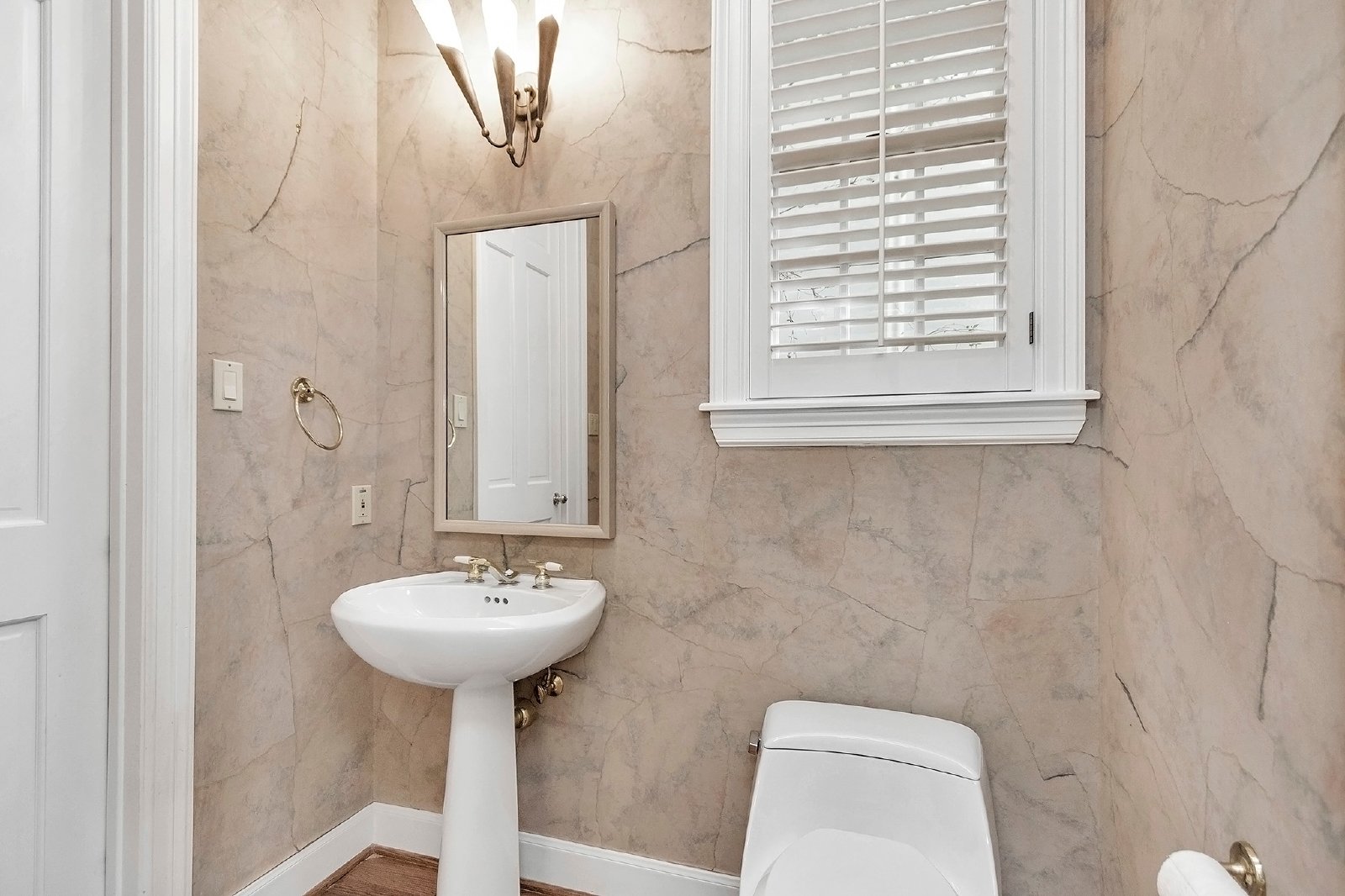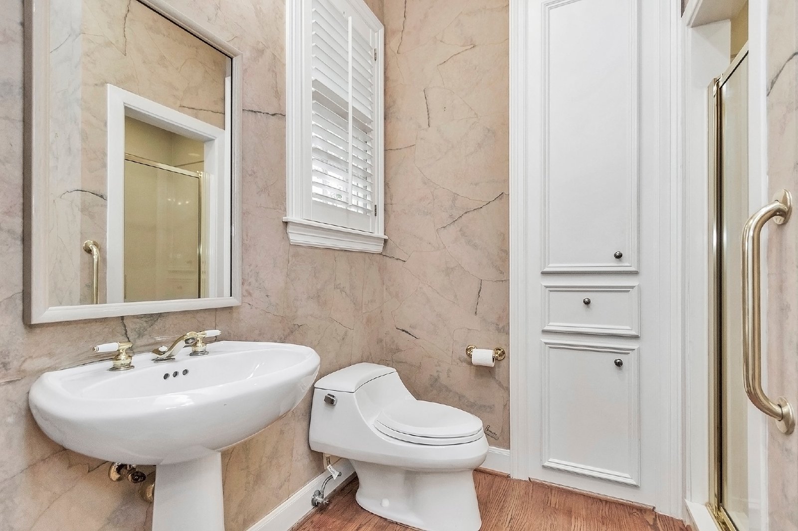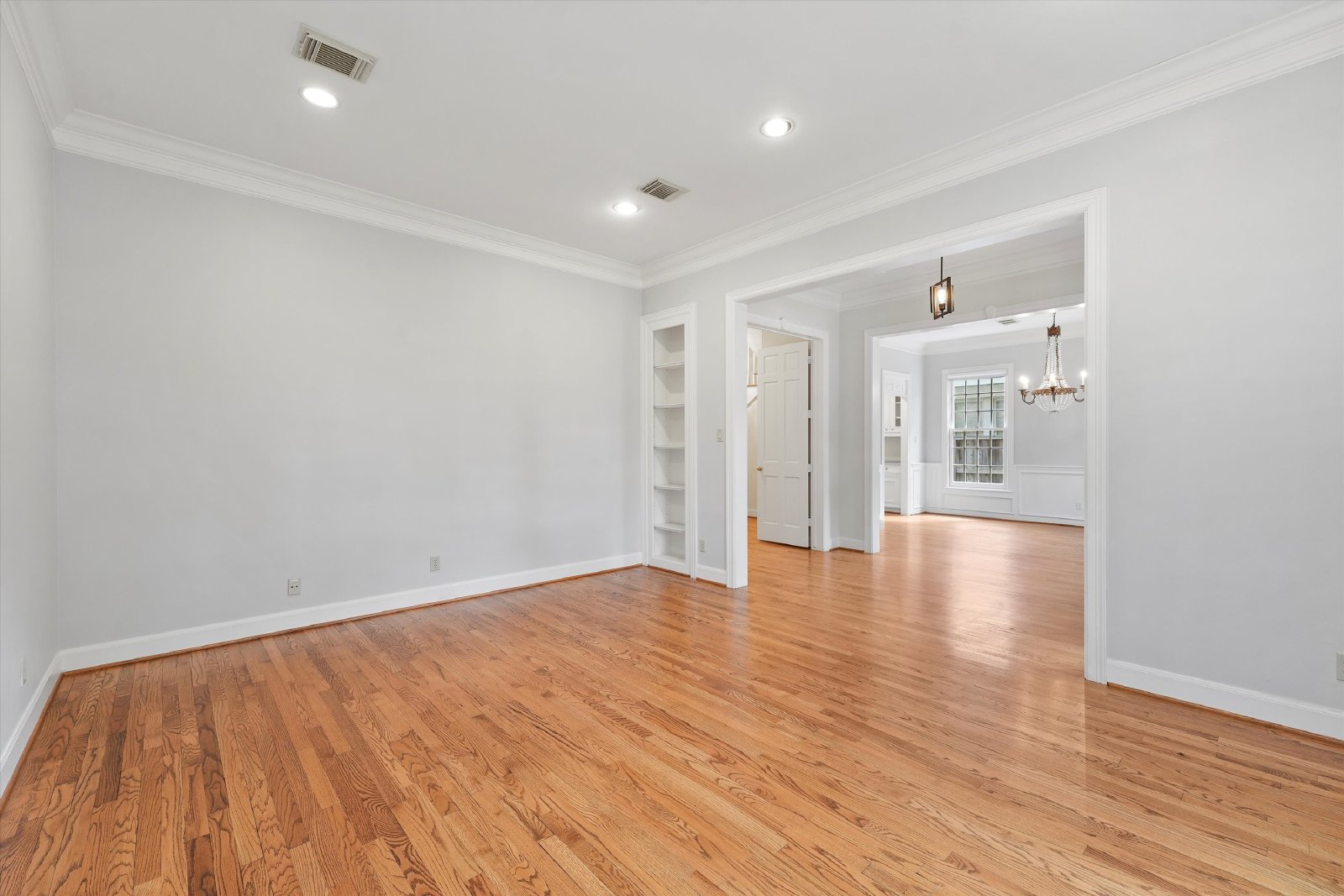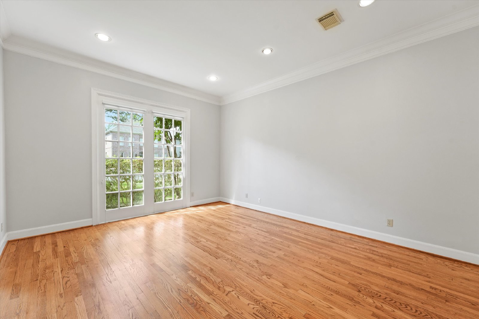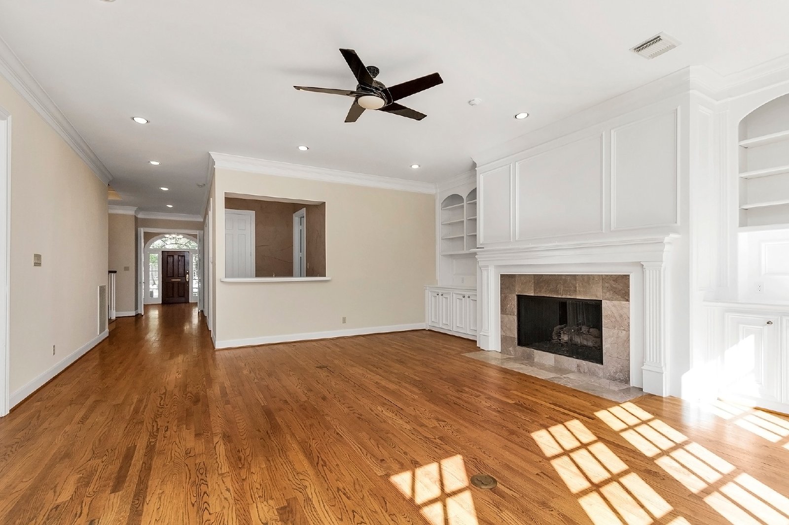 This elegant residence features both formal living and dining rooms, showcasing beautiful hardwood floors that add timeless charm.