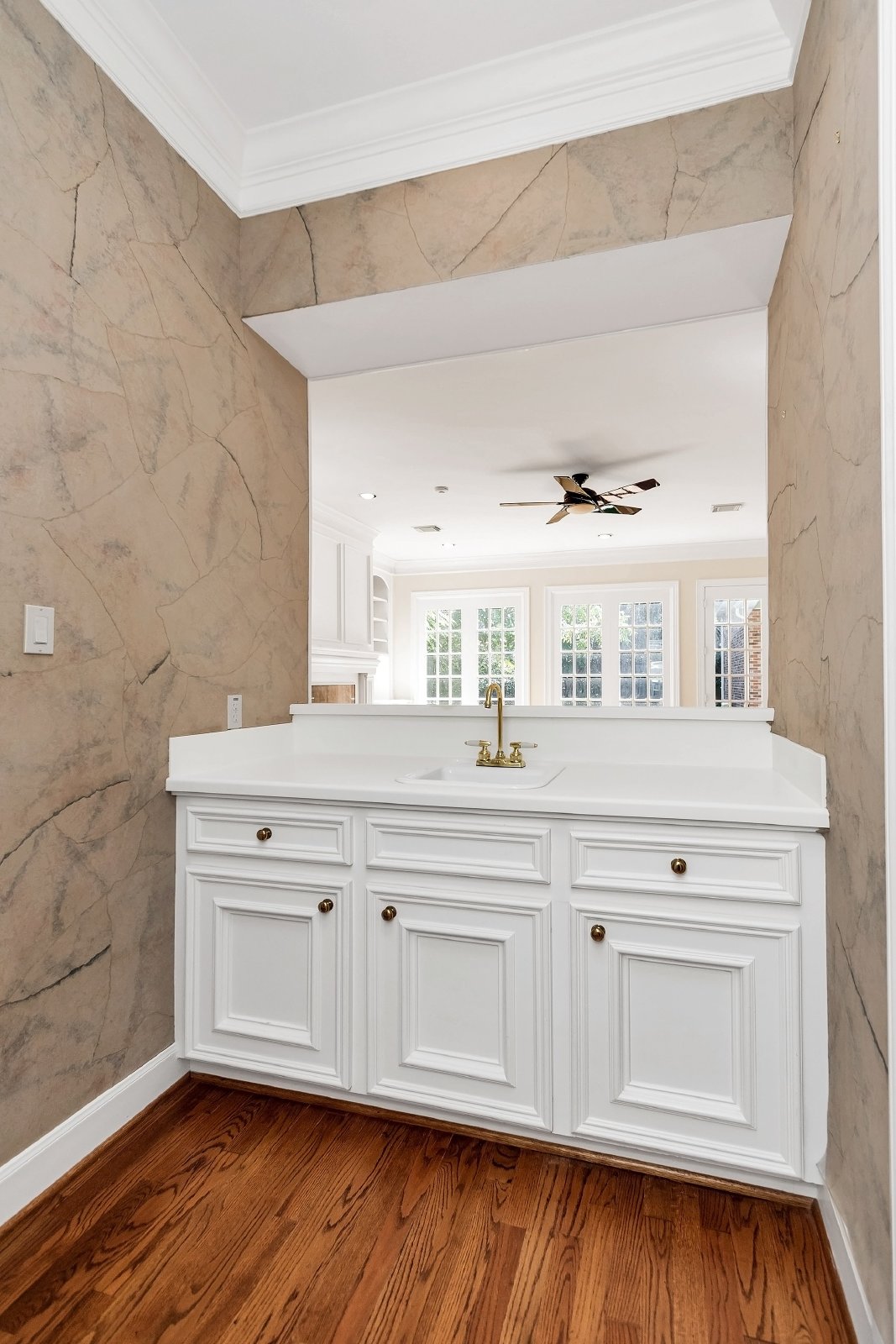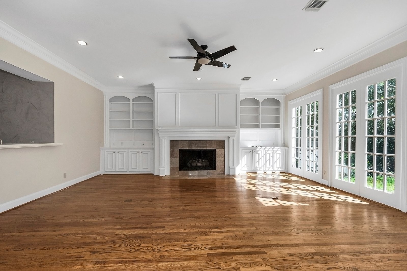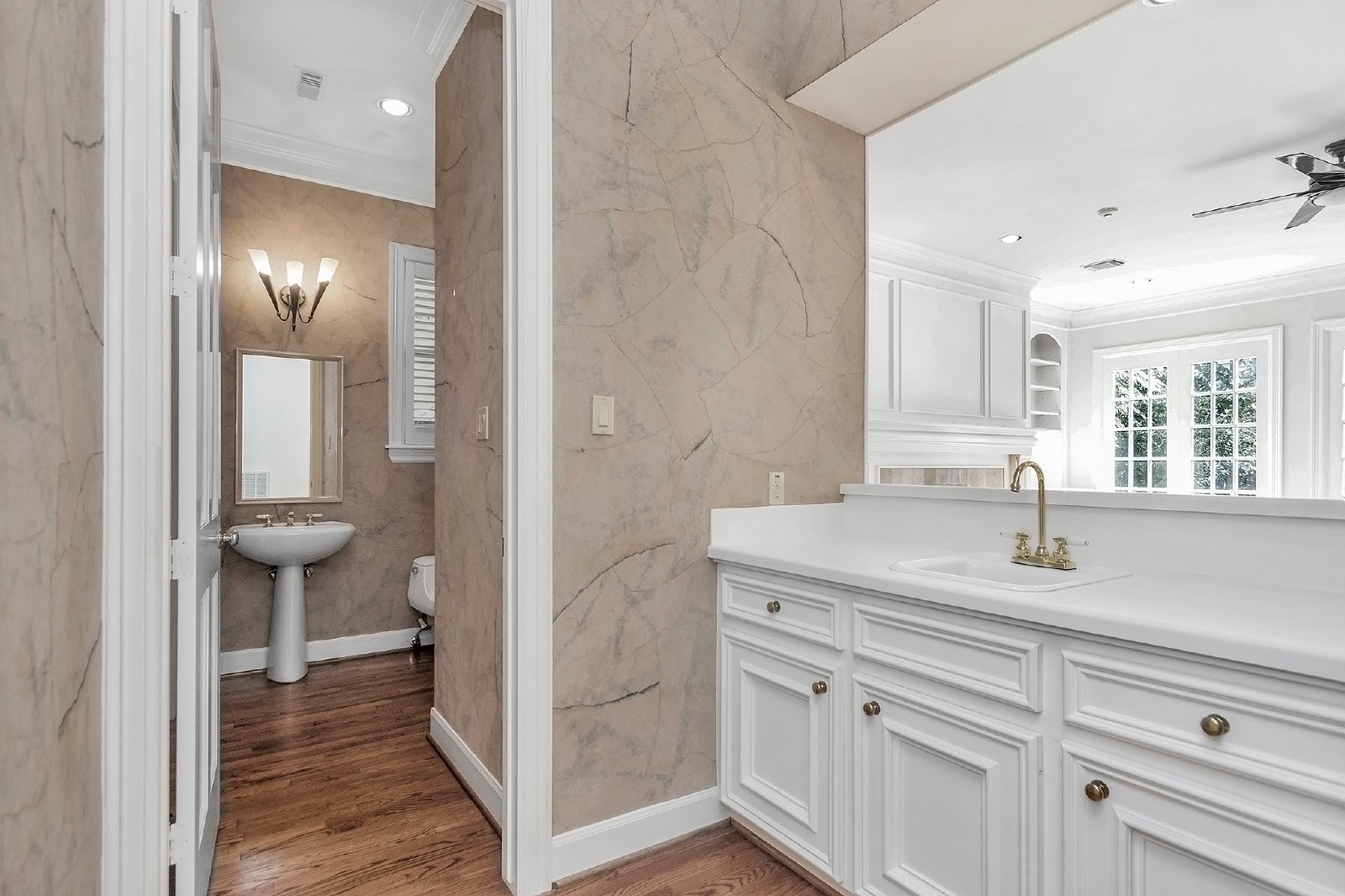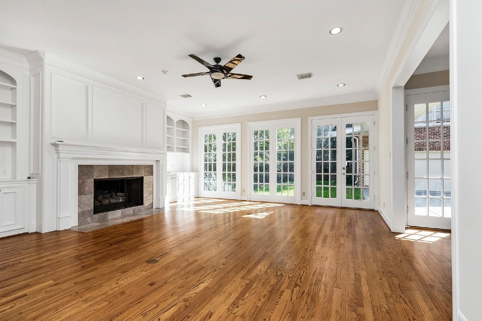 This elegant residence features both formal living and dining rooms, showcasing beautiful hardwood floors that add timeless charm.