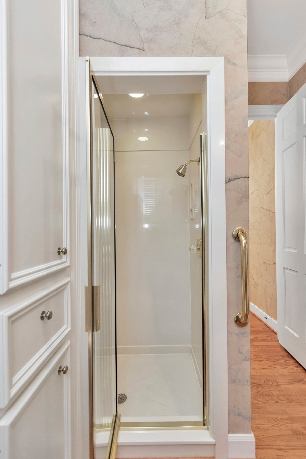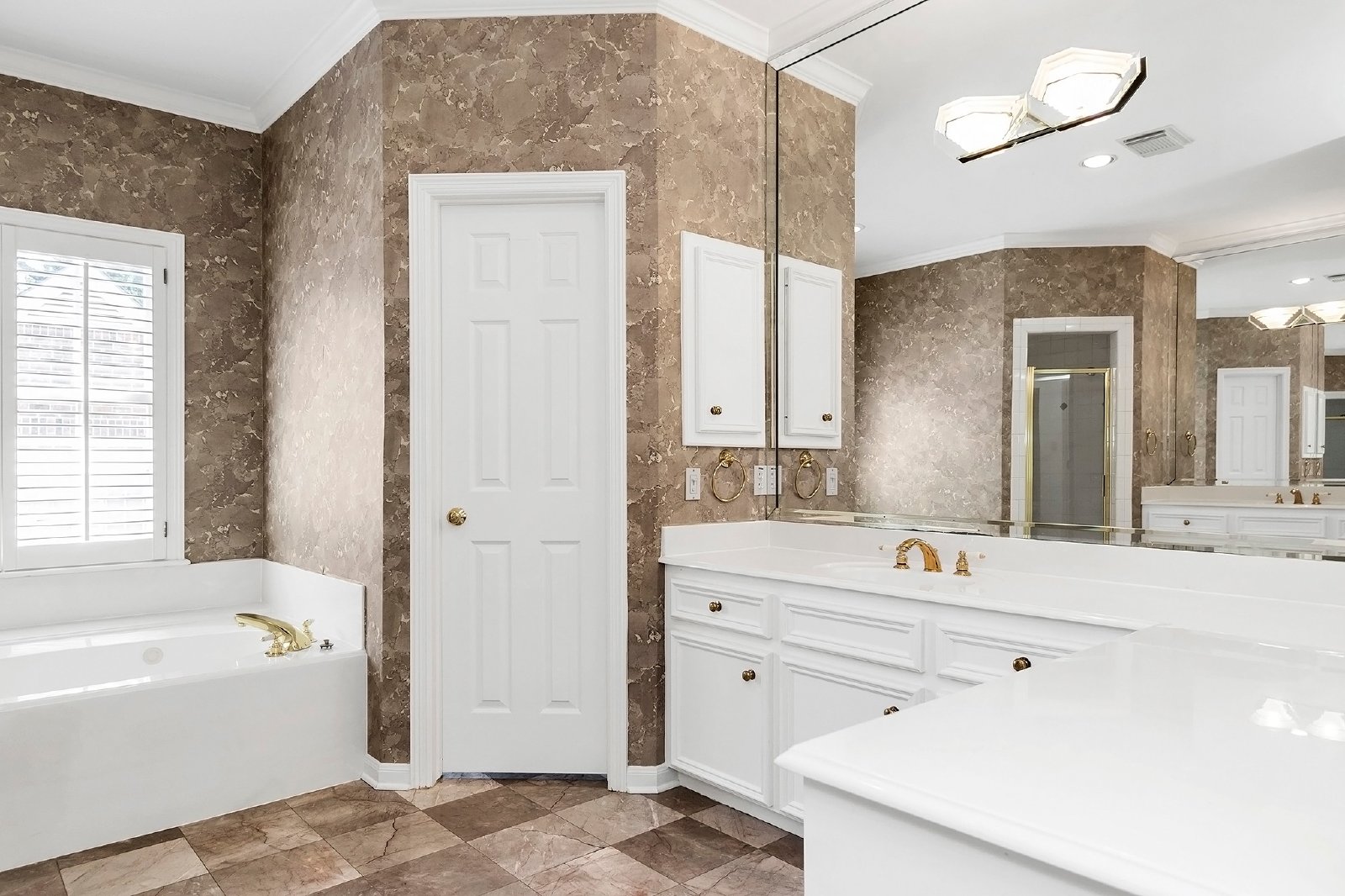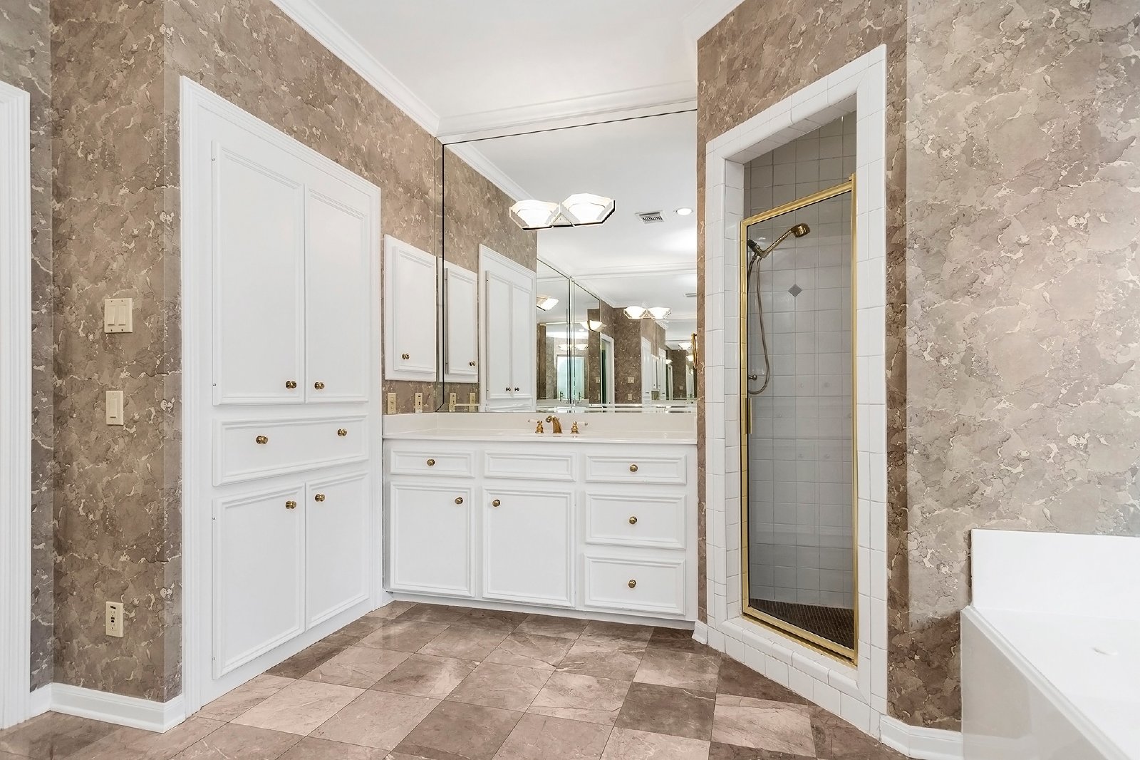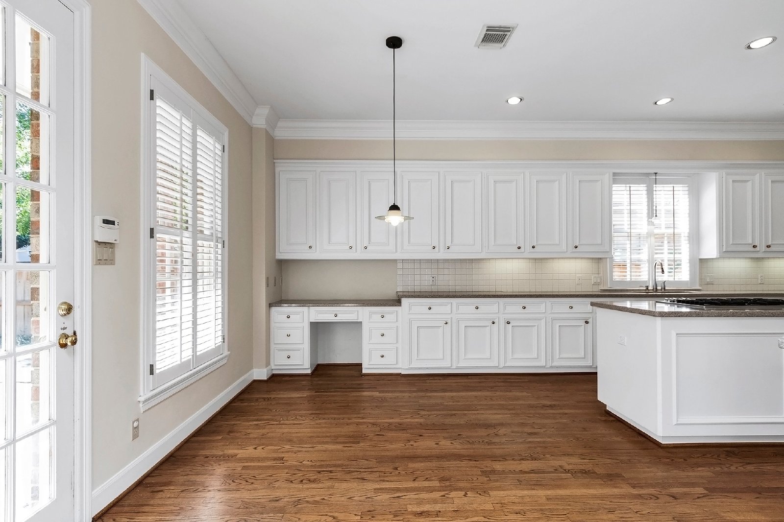 A versatile study on the main floor, with an attached bath, can easily be converted into a fifth bedroom to suit your needs. The master suite features plantation shutters, high ceilings, ample closet space, a built-in dresser, and a luxurious bathroom with a separate tub and shower.