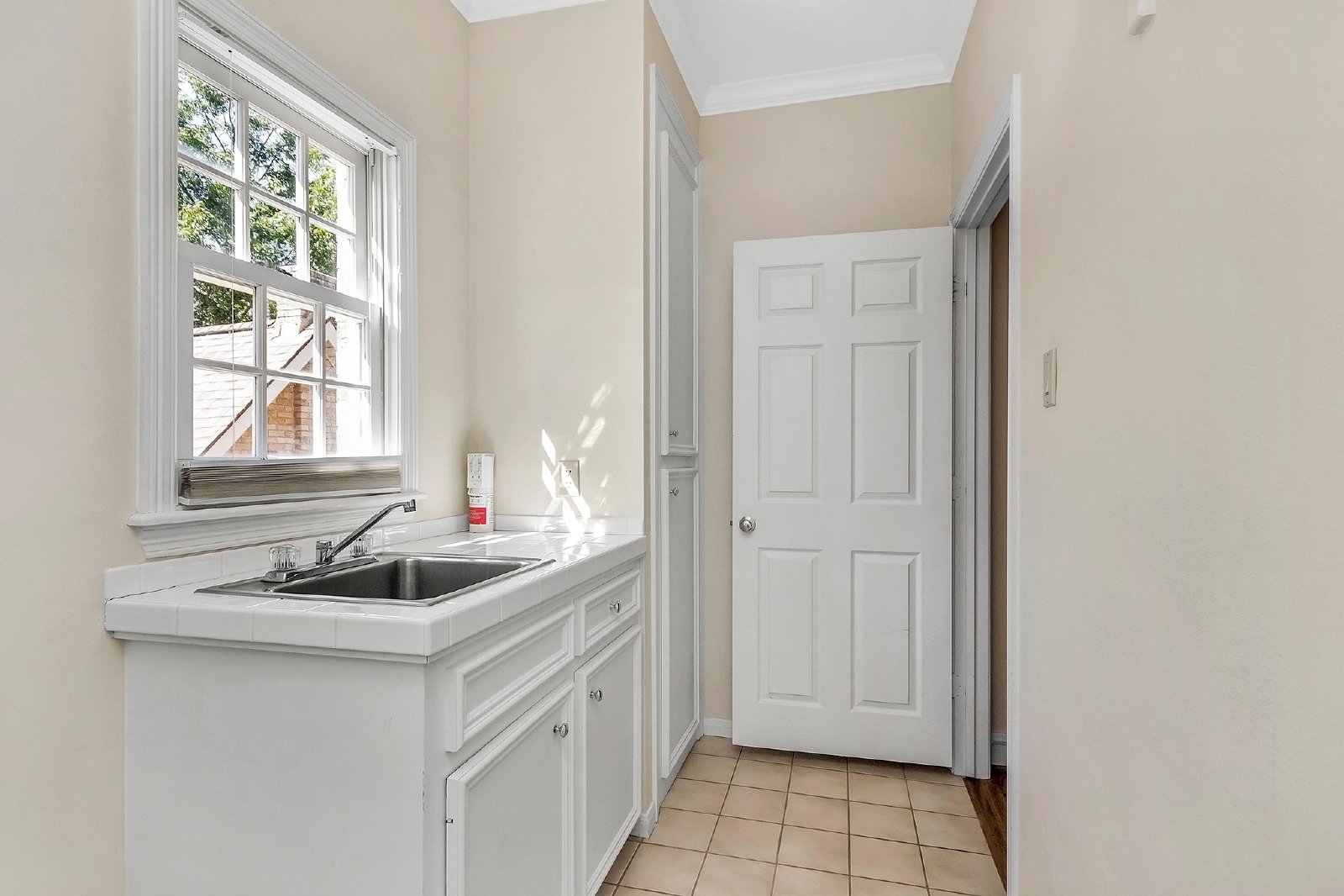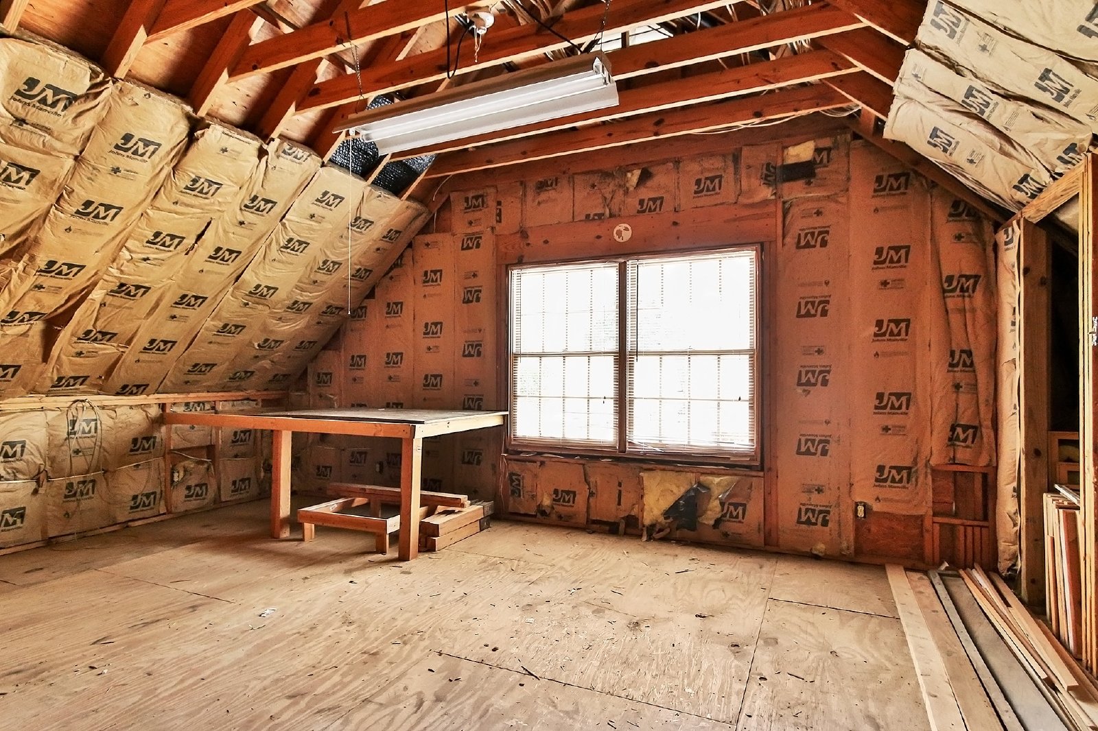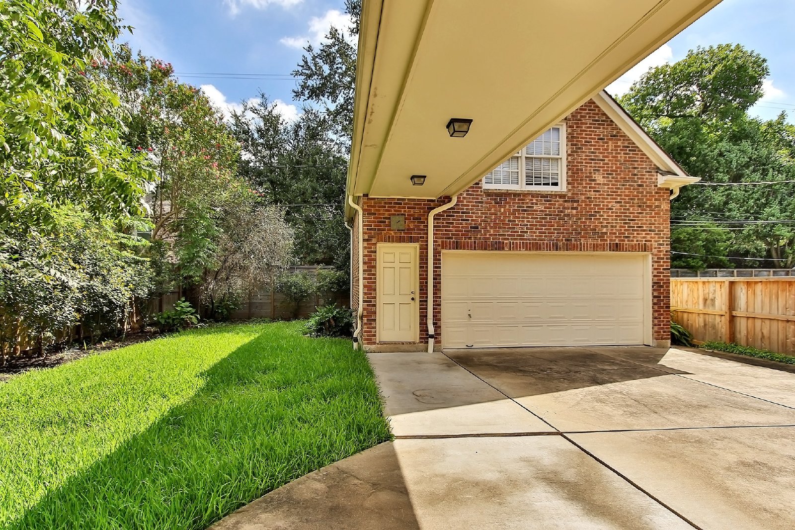 The backyard is spacious enough to accommodate a play set. Additionally, there is an unfinished space over the garage, perfect for storage or future expansion.