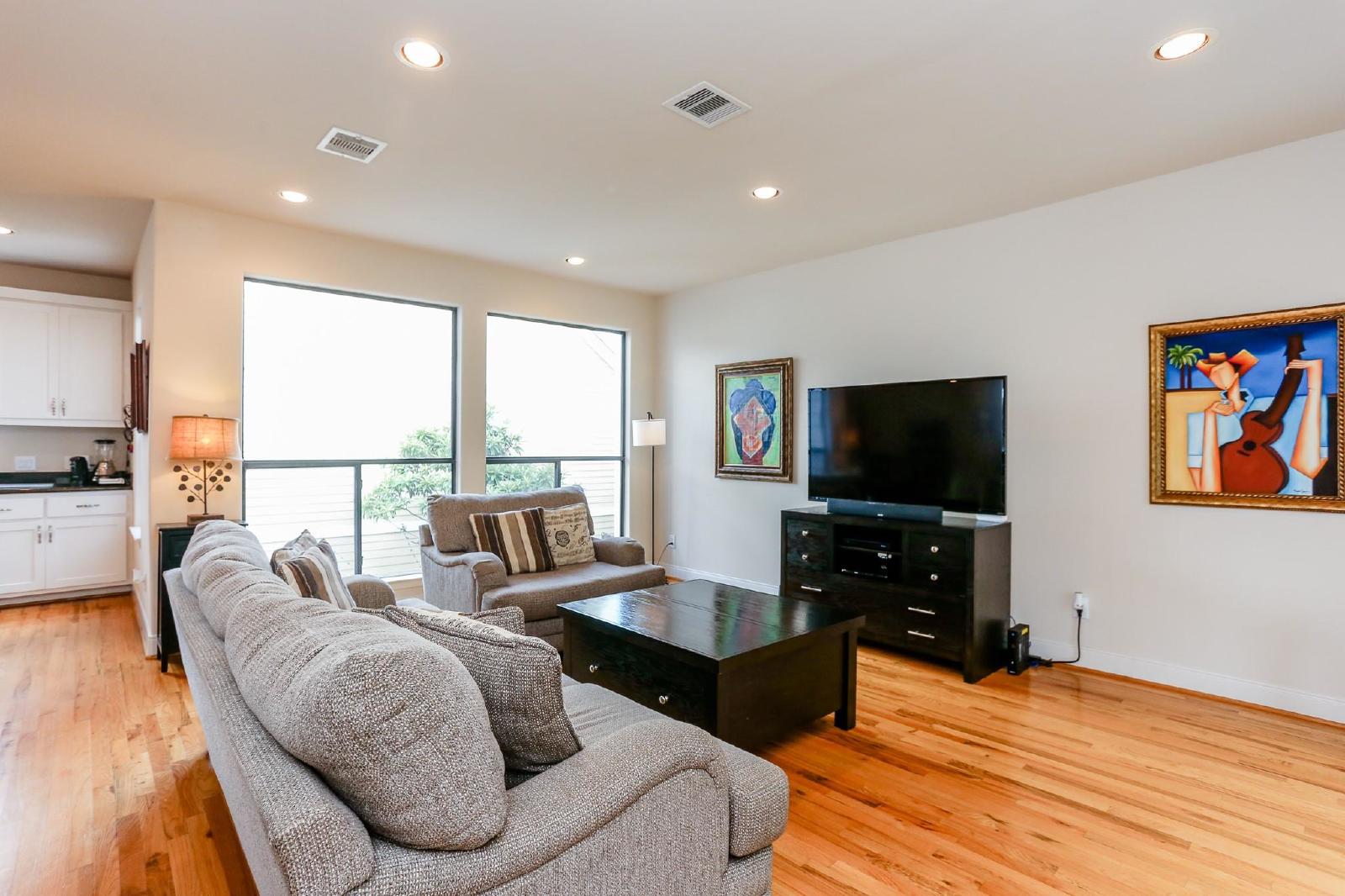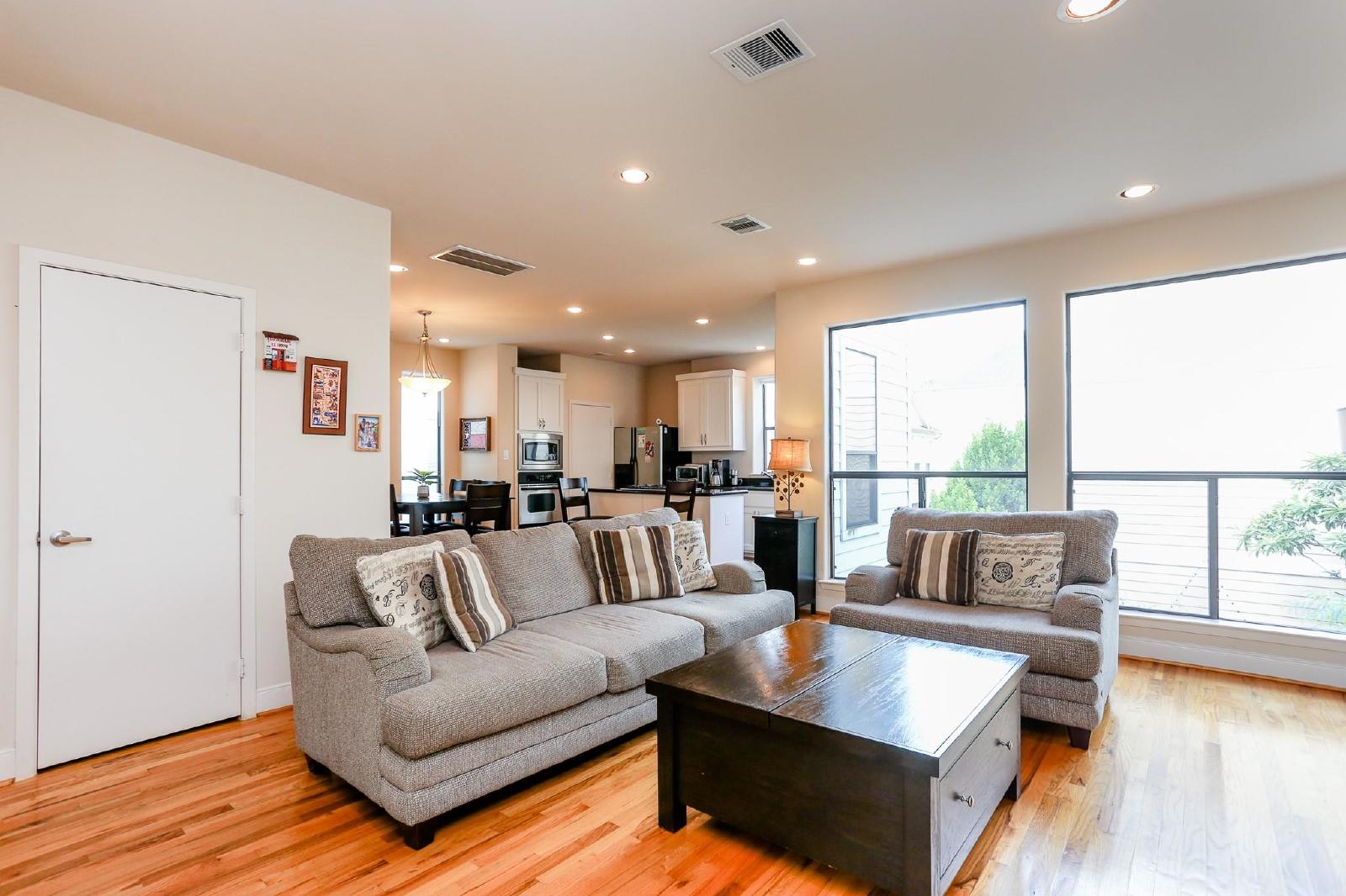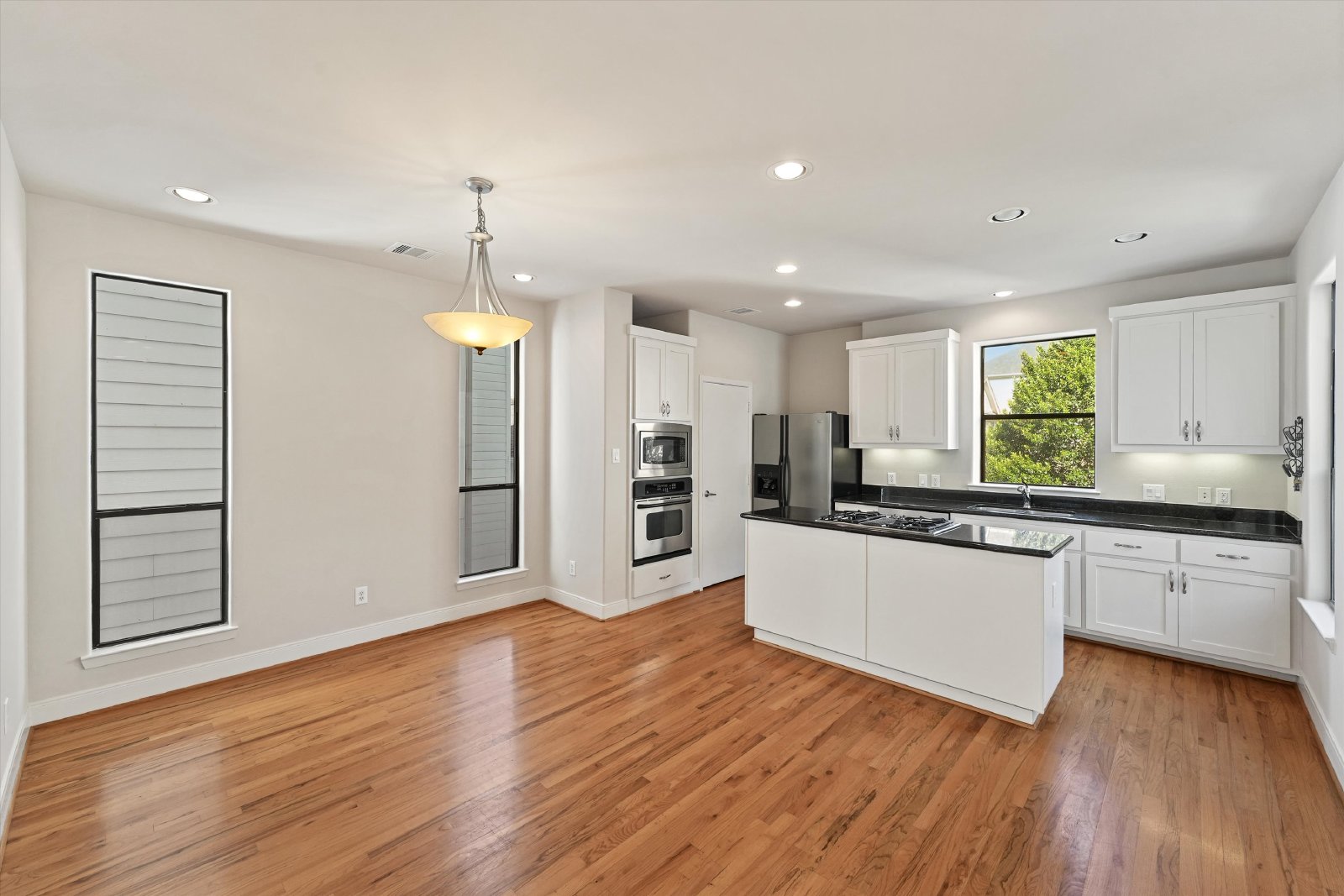 This beautiful home offers everything you need to feel right at home! Featuring neutral paint tones and gorgeous hardwood floors throughout, it’s a perfect blend of style and comfort. The open and airy living room is bright and inviting, seamlessly connecting to the kitchen—a fantastic space for entertaining. The kitchen comes equipped with stainless steel appliances, a gas cooktop island, sleek granite countertops, and an abundance of cabinet and counter space.