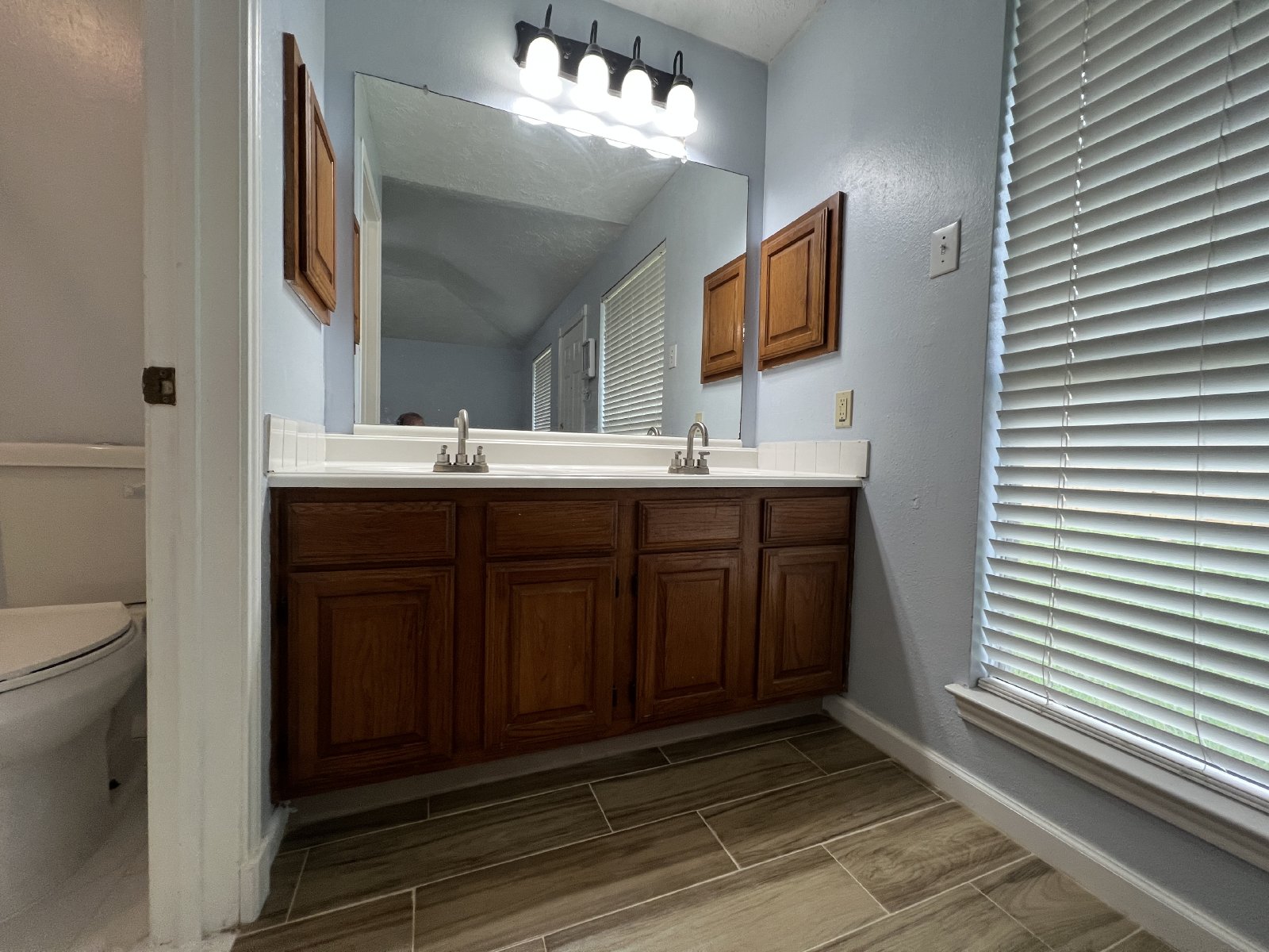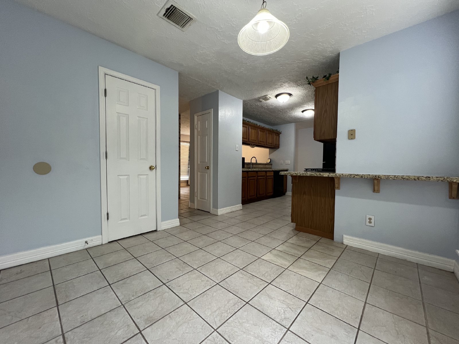 The formal dining area is ideal for entertaining, while the kitchen boasts a sleek granite countertop and plenty of space for meal prep. Throughout the home, you'll find stunning wood laminate and tile flooring that adds elegance and easy upkeep.