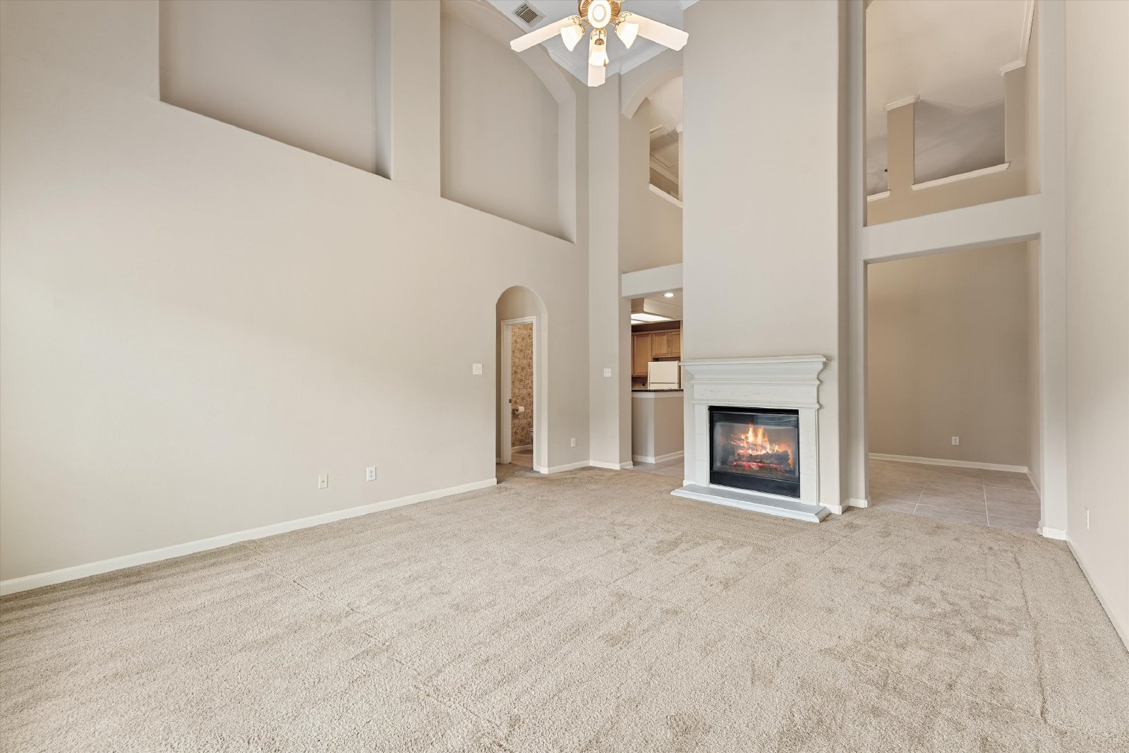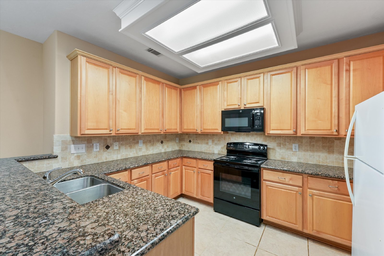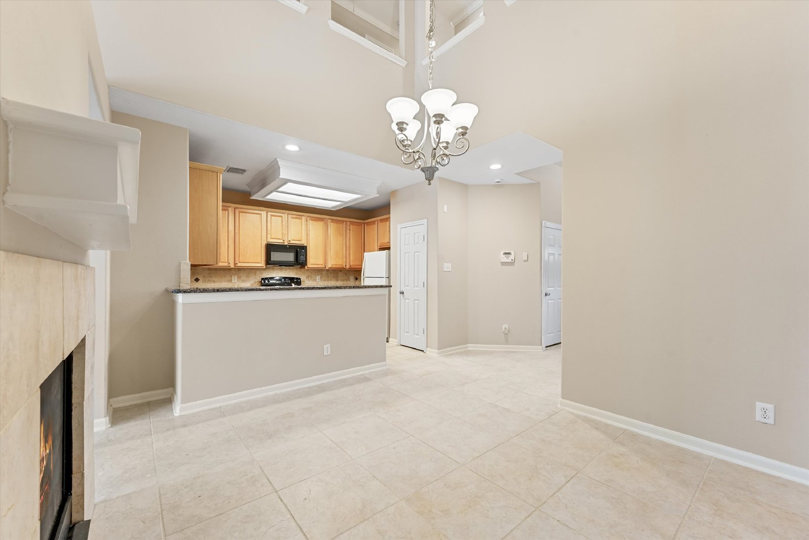 As you enter, you'll be greeted with soaring high ceilings that enhance the open and spacious feel of the home. The kitchen is a chef's dream, complete with granite countertops, a refrigerator, and plenty of storage space – perfect for preparing meals and hosting guests.