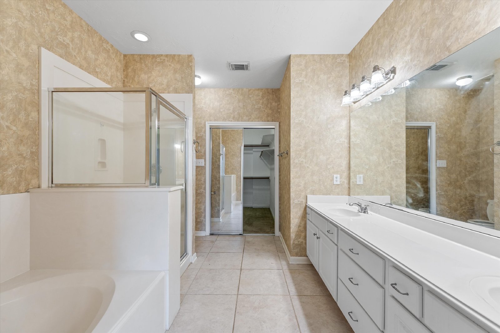 The master bedroom is a true retreat, offering a spa-like bathroom with both a separate tub and shower, as well as a generous walk-in closet.