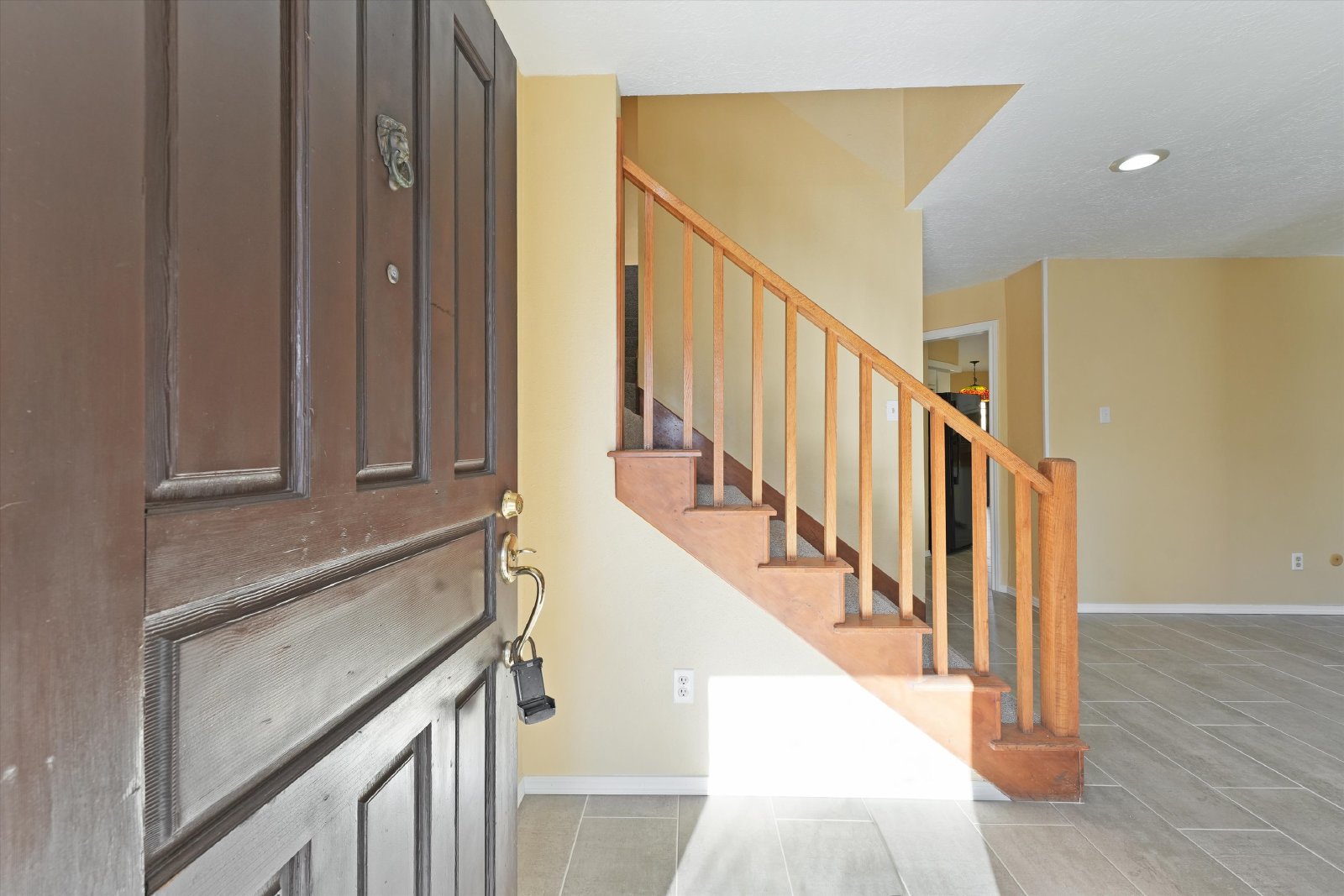 Nestled in a peaceful cul-de-sac, this fantastic home offers both comfort and style. Step into the inviting living room featuring vaulted ceilings and a stunning rock fireplace, perfect for cozy gatherings. Downstairs boasts all tile, upstairs is brand new carpet (2025) complementing the bright and airy atmosphere. The kitchen is equipped with ample cabinets, a breakfast room with a view of the patio and backyard, and a formal dining room overlooks the side yard providing a serene setting.
