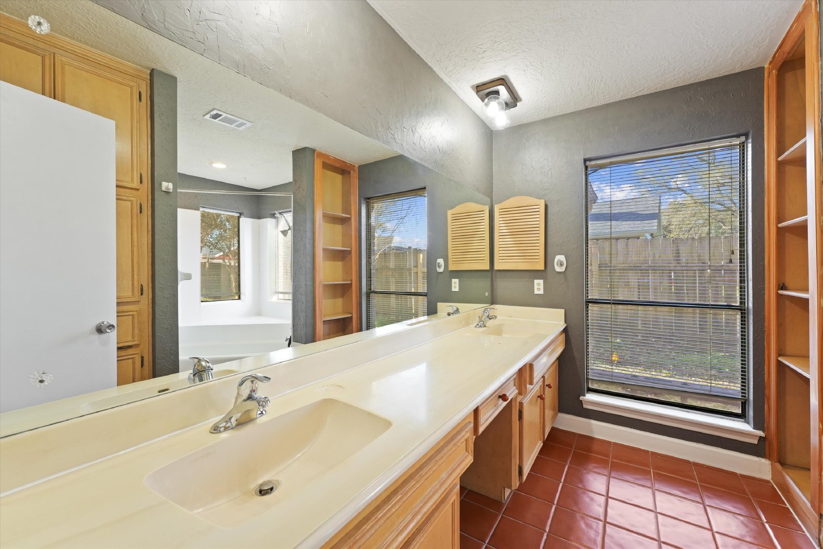 With spacious rooms and plenty of closet/storage space, including 2 walk-in closets in the primary bedroom, this home offers both practicality and luxury. The primary bath features double sinks, a separate tub and shower, and built-ins for extra storage. Enjoy the large backyard with a brick patio, ideal for outdoor entertaining. Conveniently located near shopping, dining, Westpark Tollway, and within walking distance to the bus line for easy access to downtown. Don't miss out on this charming gem!