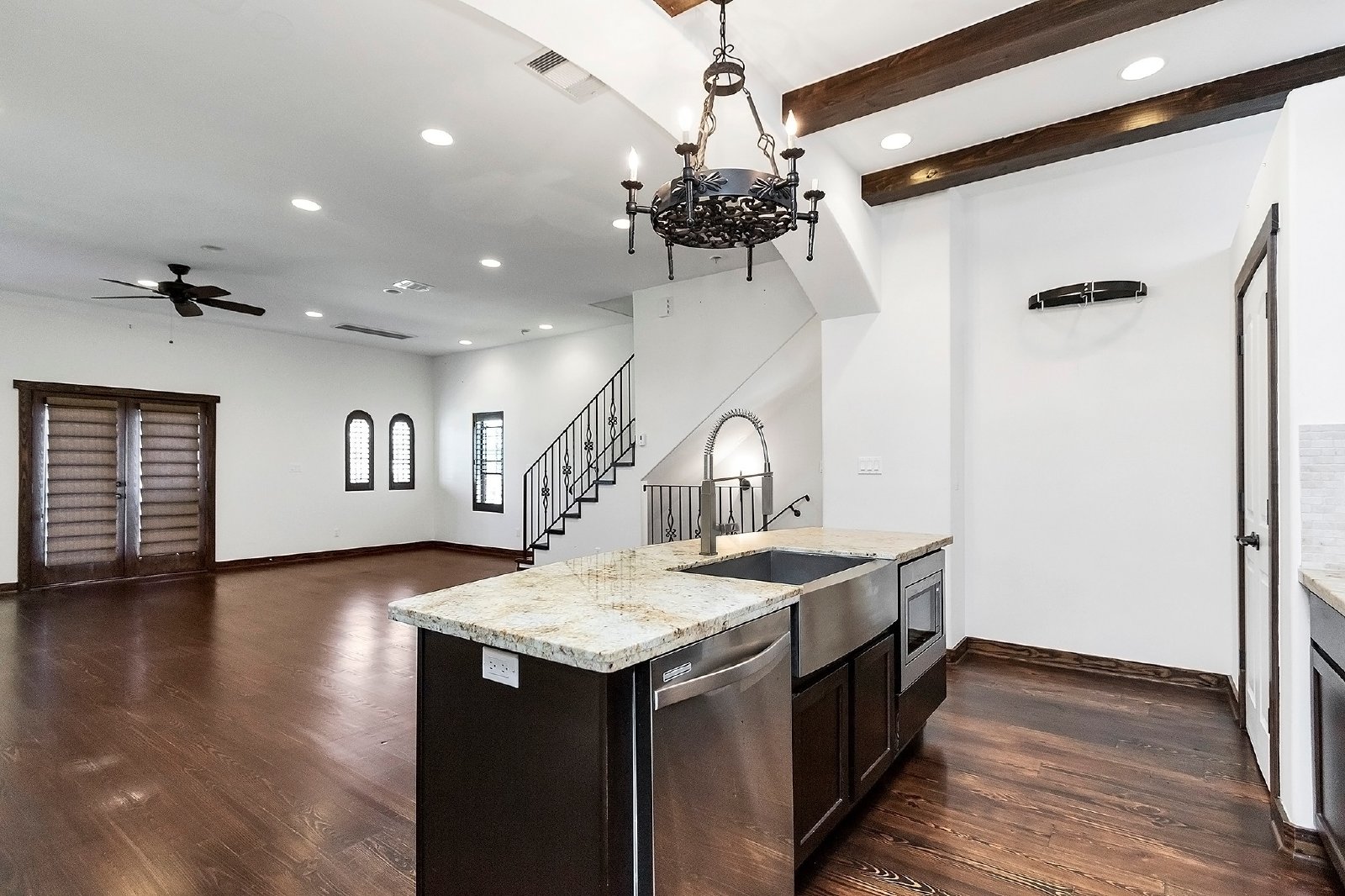 A Mediterranean Style Villa with 3 bedrooms and 3.5 bathrooms are sure to fit your every need. This home features a beautiful view of the local park and a private gated courtyard with a view of the park located in Shady Acres. An extremely rare find inside the loop, this one will not last long. the home features beautiful architectural details such as exposed wooden beams, stone arches, ornamental ironwork, wooden doors, a barn door, and scroll stair railings. The kitchen features loads of cabinet and counter space, gas range with conventional oven, stainless fridge included and built-in wine refrigerator. Large master bedroom suite with cathedral ceiling, his/hers sinks, stunning walk-in closet and separate shower with soaker tub. Beautiful tile and wood flooring, balcony with a view, and your private courtyard looking out to Bembry Park. Landlord will provide a w/d for additional fee. No roommates. No large trucks, trailers or recreation vehicles. Come see this home today!