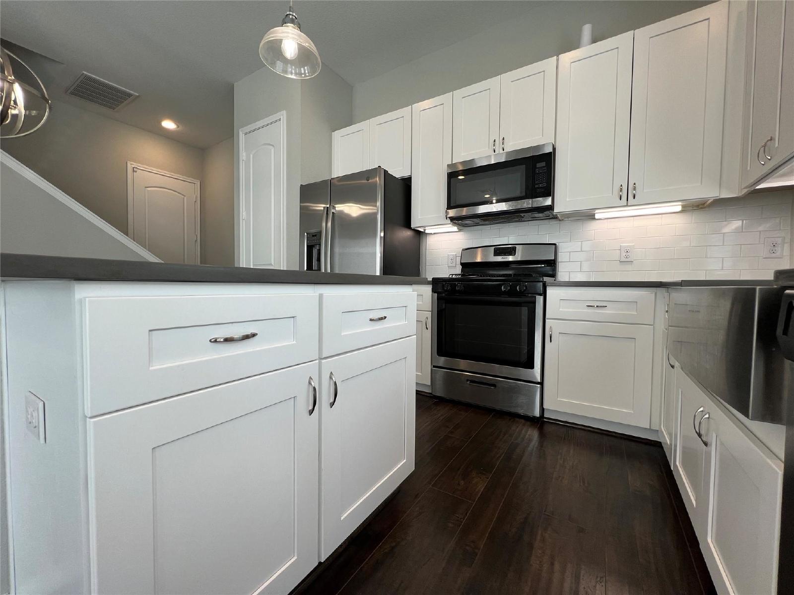 Recent upgrades include the addition of 2" blinds that adorn every window. The kitchen features stainless steel appliances that include a refrigerator, an elegant wine fridge, adding a touch of opulence to your entertainment endeavors.