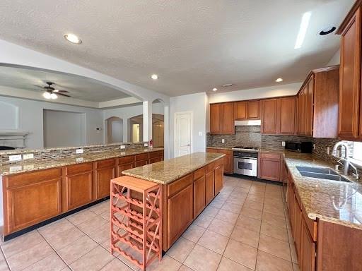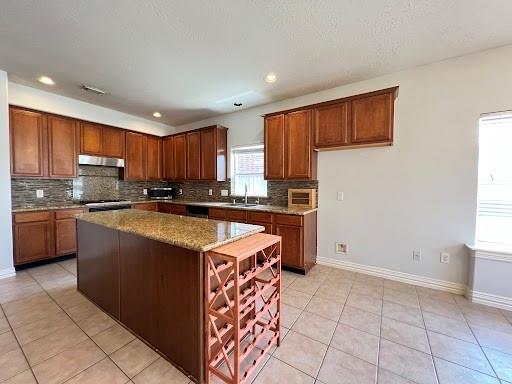 The expansive kitchen is a true centerpiece—featuring a large island, ample counter space, and stainless steel appliances—perfect for culinary adventures and entertaining guests.