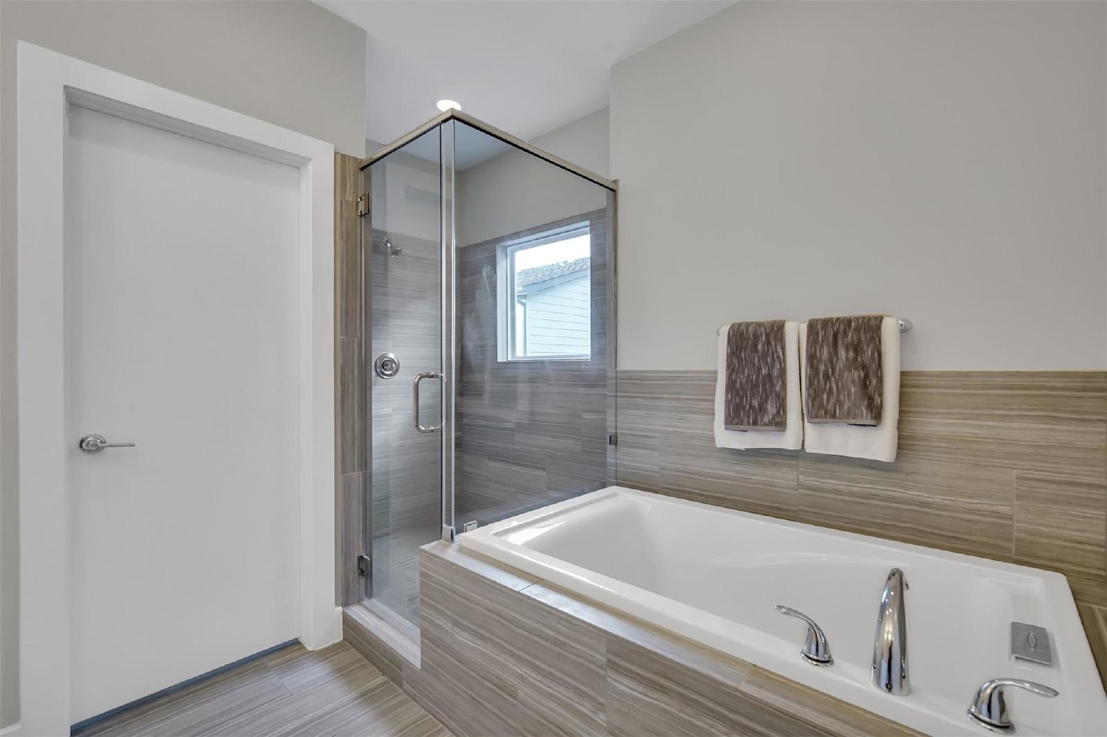 Generously sized closets and a luxurious primary suite featuring a spa-like bath with soaking tub!