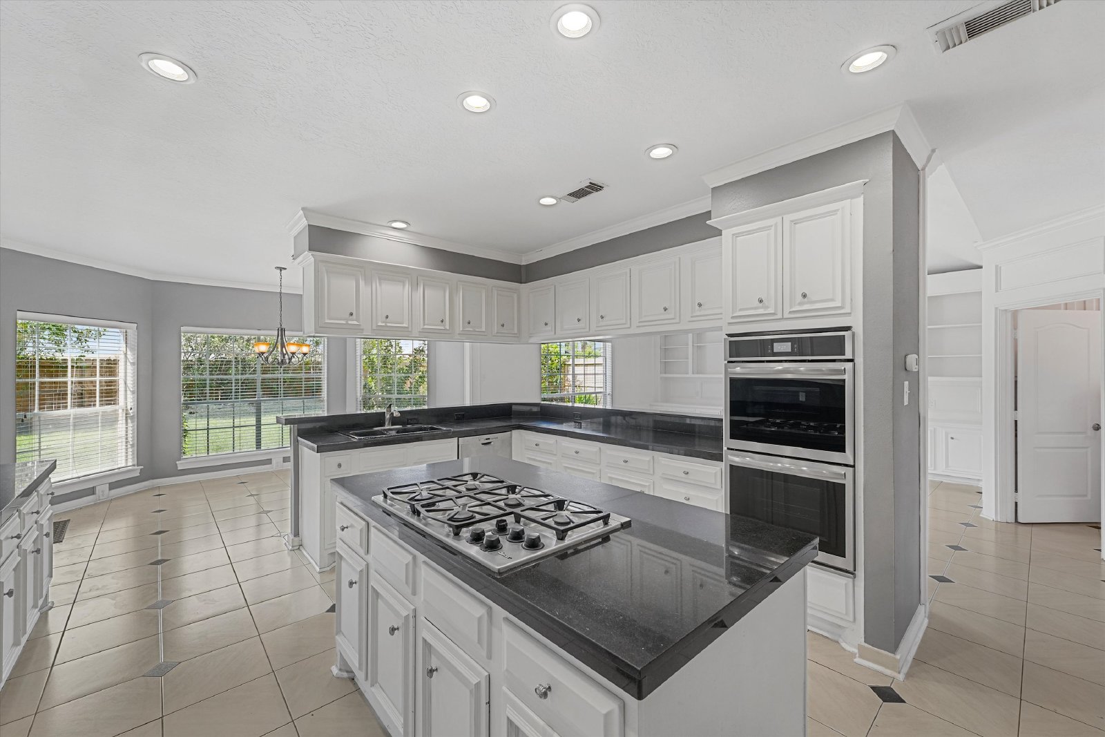 The gourmet kitchen boasts granite countertops, a gas cooktop, double ovens, center island, and a convenient eat-at bar—perfect for gatherings. Upstairs, you’ll find a spacious game room along with four additional bedrooms and two full baths, offering plenty of space for family and guests.