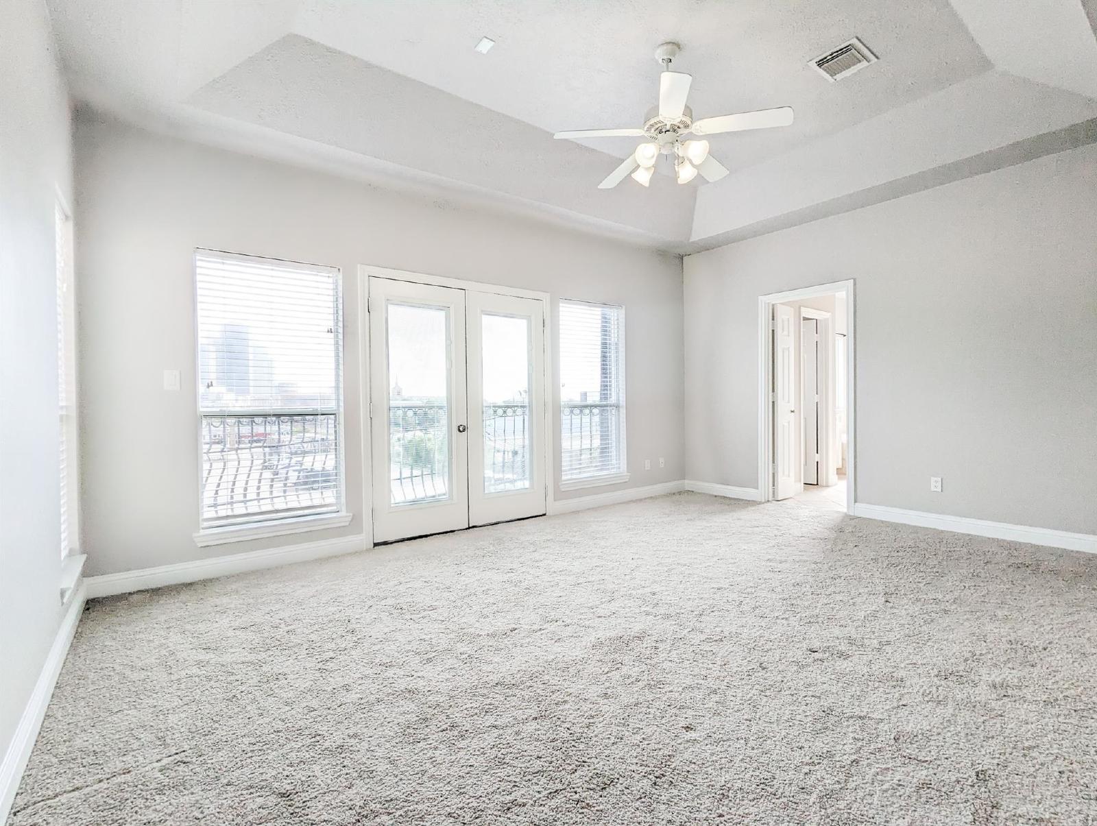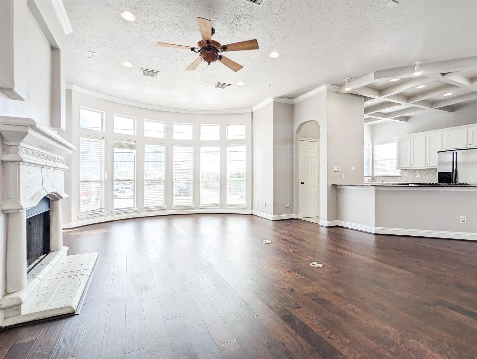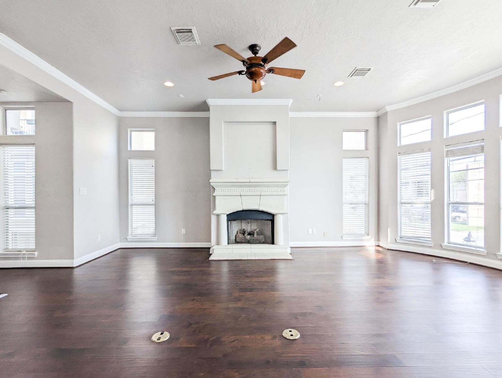 Discover city living at its finest in this freshly updated end-unit townhome, offering an unobstructed, one-of-a-kind view of the Houston skyline—visible from both the spacious living room and the serene primary bedroom. This stunning home is flooded with natural light, creating a bright and airy atmosphere throughout.