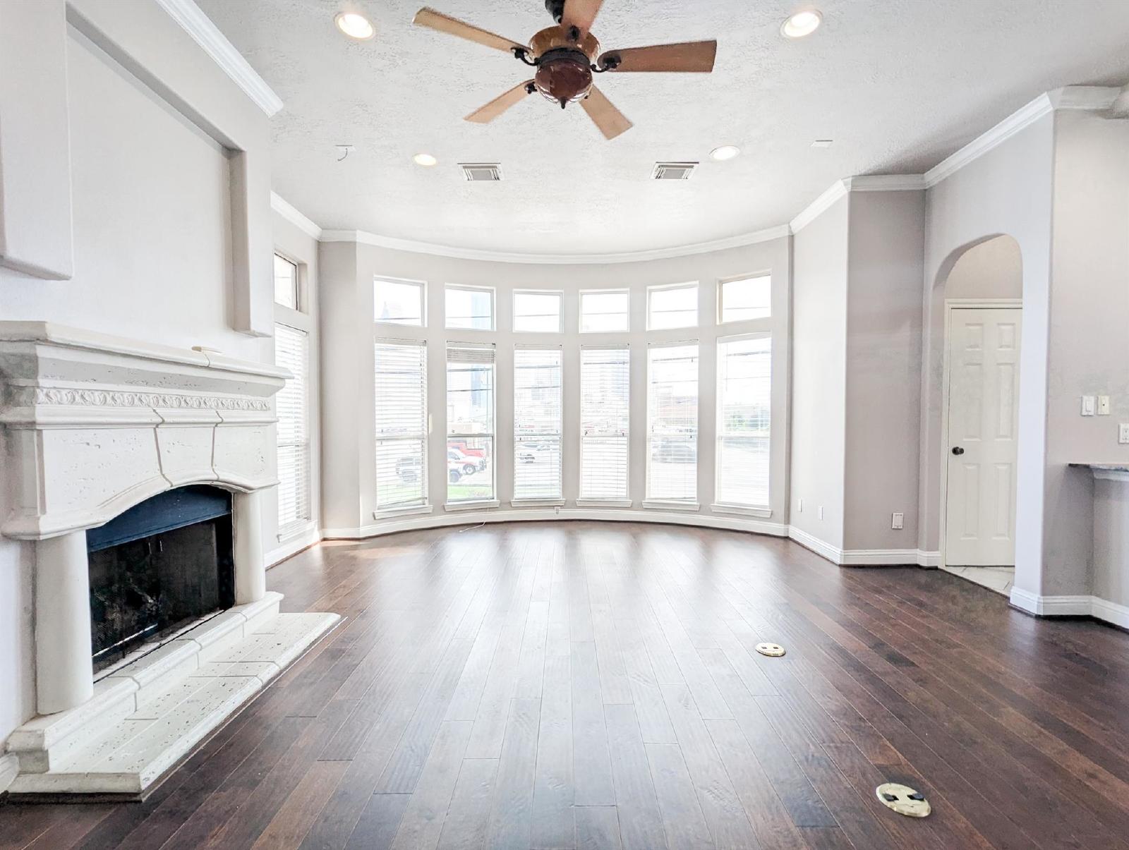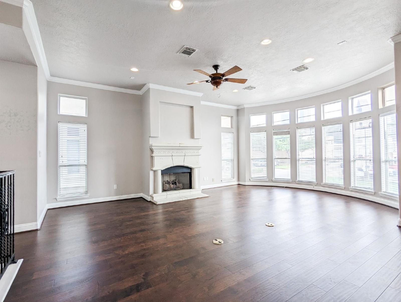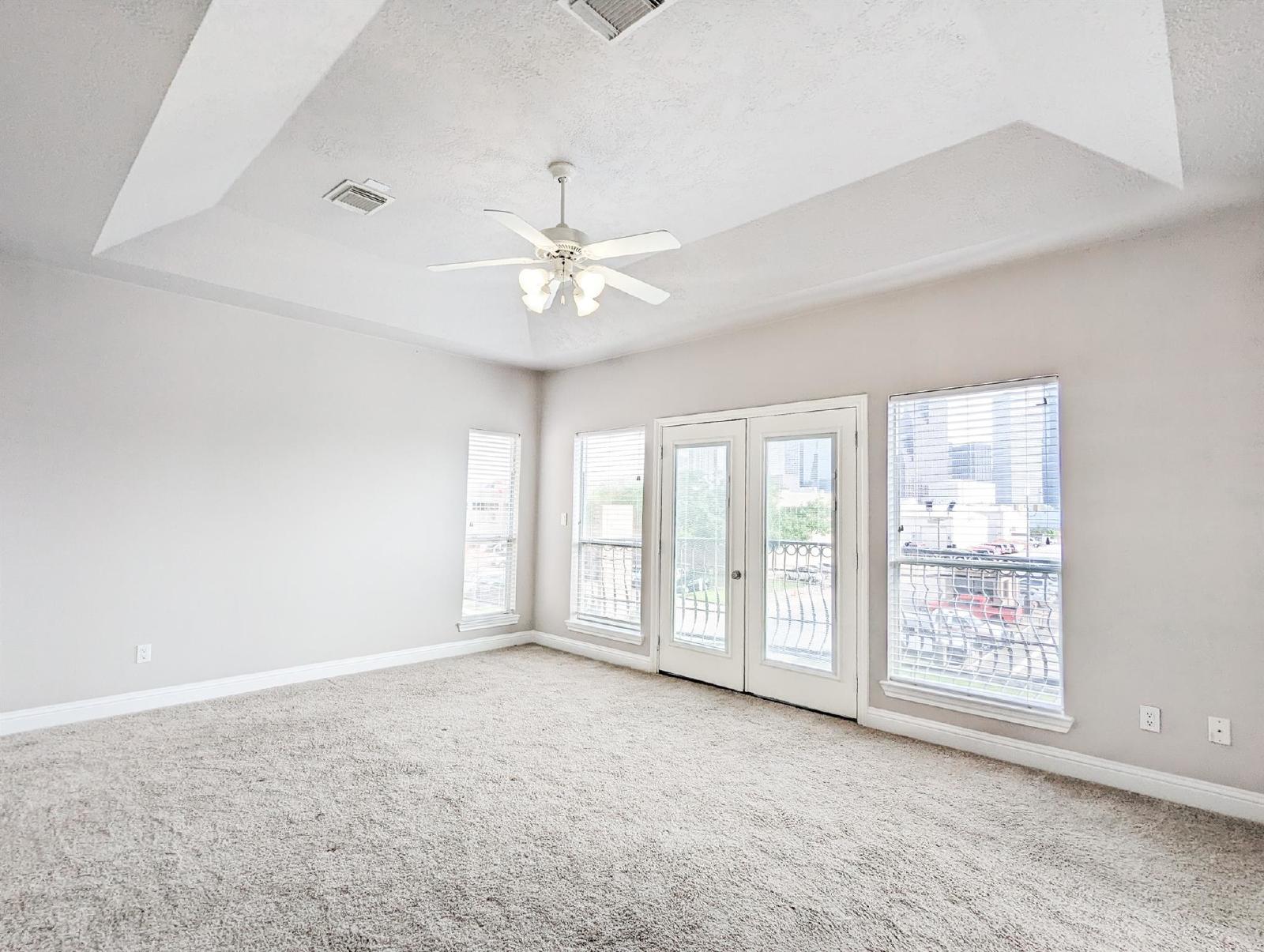 Discover city living at its finest in this freshly updated end-unit townhome, offering an unobstructed, one-of-a-kind view of the Houston skyline—visible from both the spacious living room and the serene primary bedroom. This stunning home is flooded with natural light, creating a bright and airy atmosphere throughout.