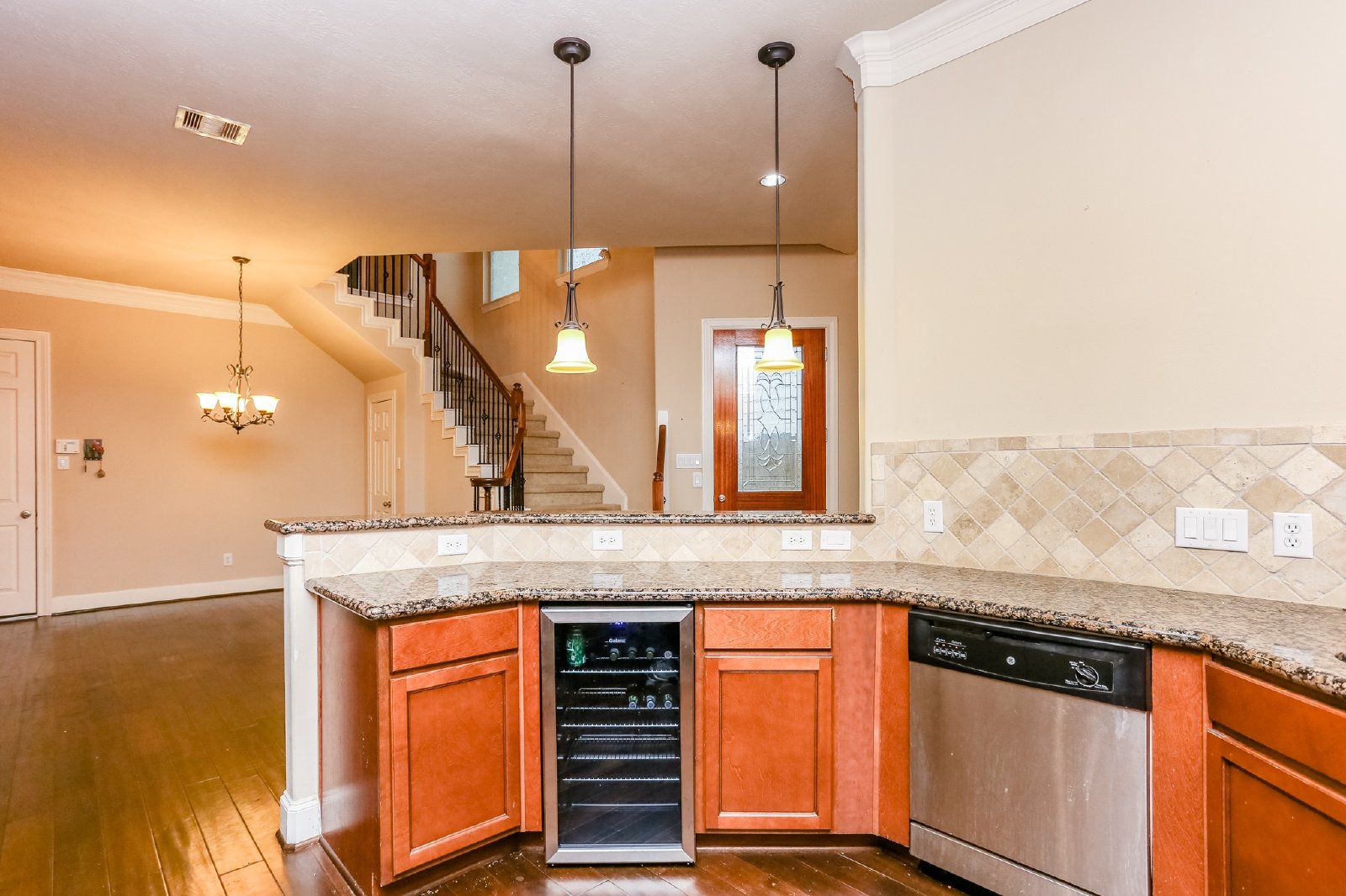 Spacious master suite offers a huge walk-in closet, his and hers sinks, Jacuzzi tub and separate shower. Hard wood floors, recess lighting and crown molding throughout the first floor. The kitchen offers granite countertops, stainless appliances, wine cooler and custom tile backsplash. The cozy backyard has a custom slate patio perfect for outdoor entertaining!